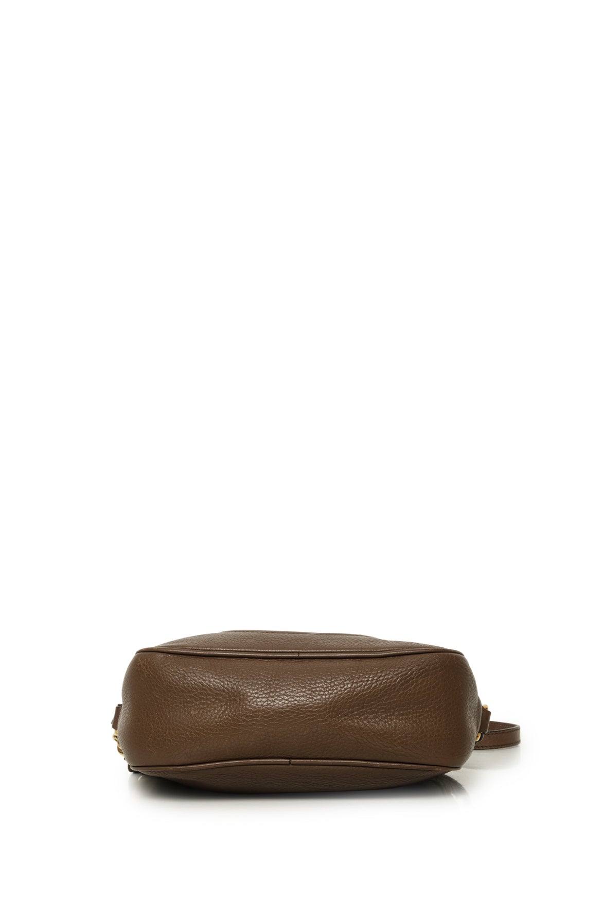 Soho Disco Camera Bag. 308364 498879. Relaxed shape, visible scuffing throughout, mark on back, cracking on bottom piping & strap, tacky feeling on exterior. Strap drop 16"-22.5". 6"H x 7.5"W x 3"D.