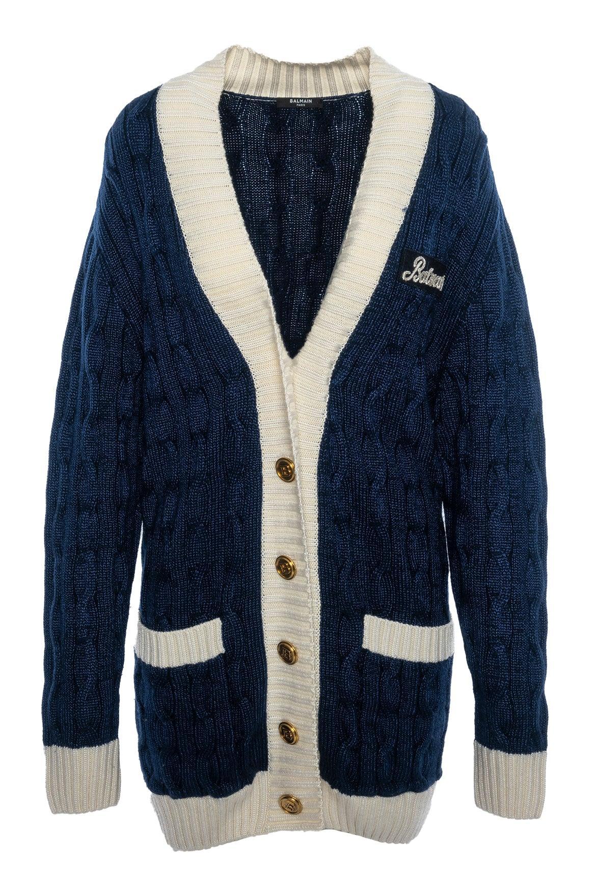 Balmain Size 40 Logo Patch Cableknit Cardigan