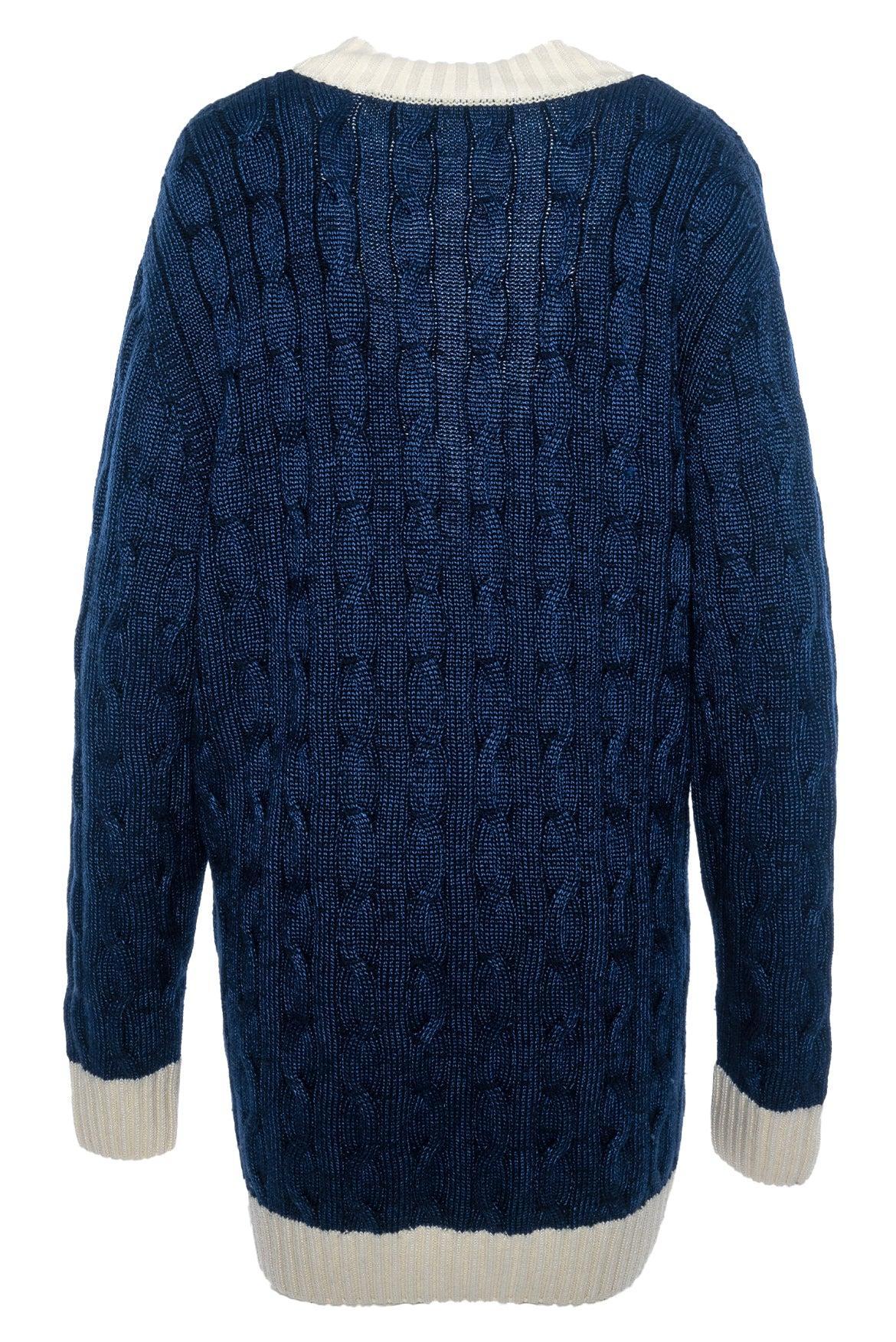 Logo Patch Cableknit Cardigan. As is minor pulls & wear.