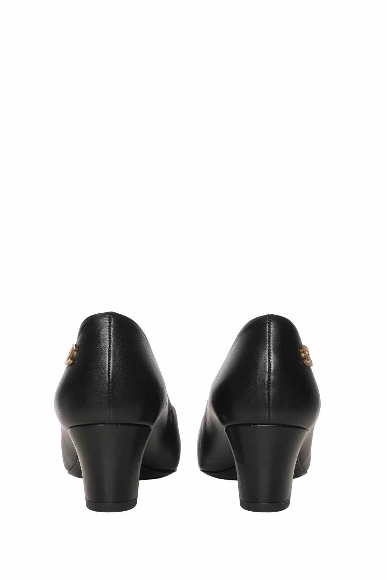 Cap Toe Ballet Pumps. D G36397. Creasing throughout; minor scuffs; peeling & wear at inner soles. Heel Height 2".