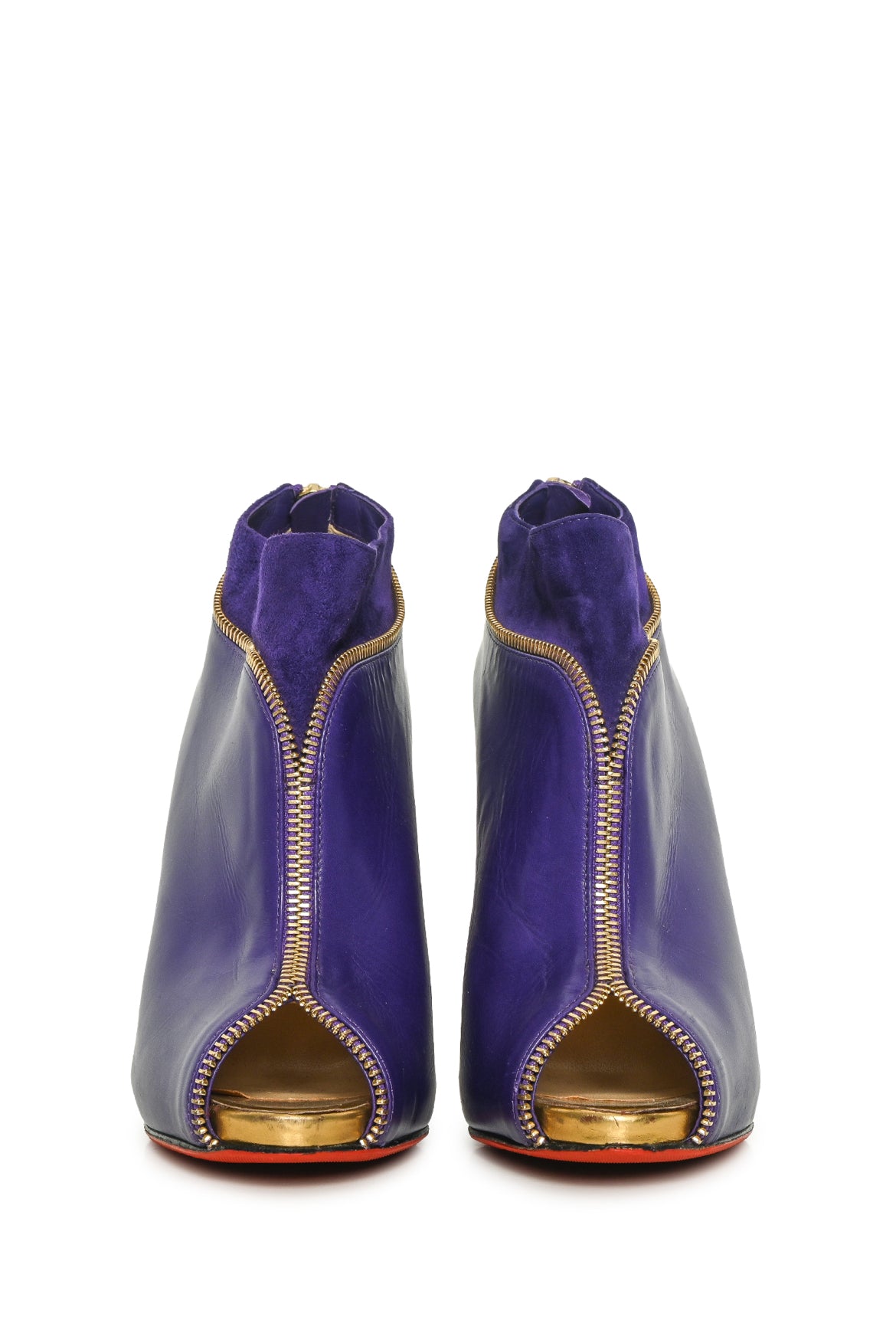 Christian Louboutin Size 38 Leather & Suede Col Zippe Peep Toe Ankle Boots