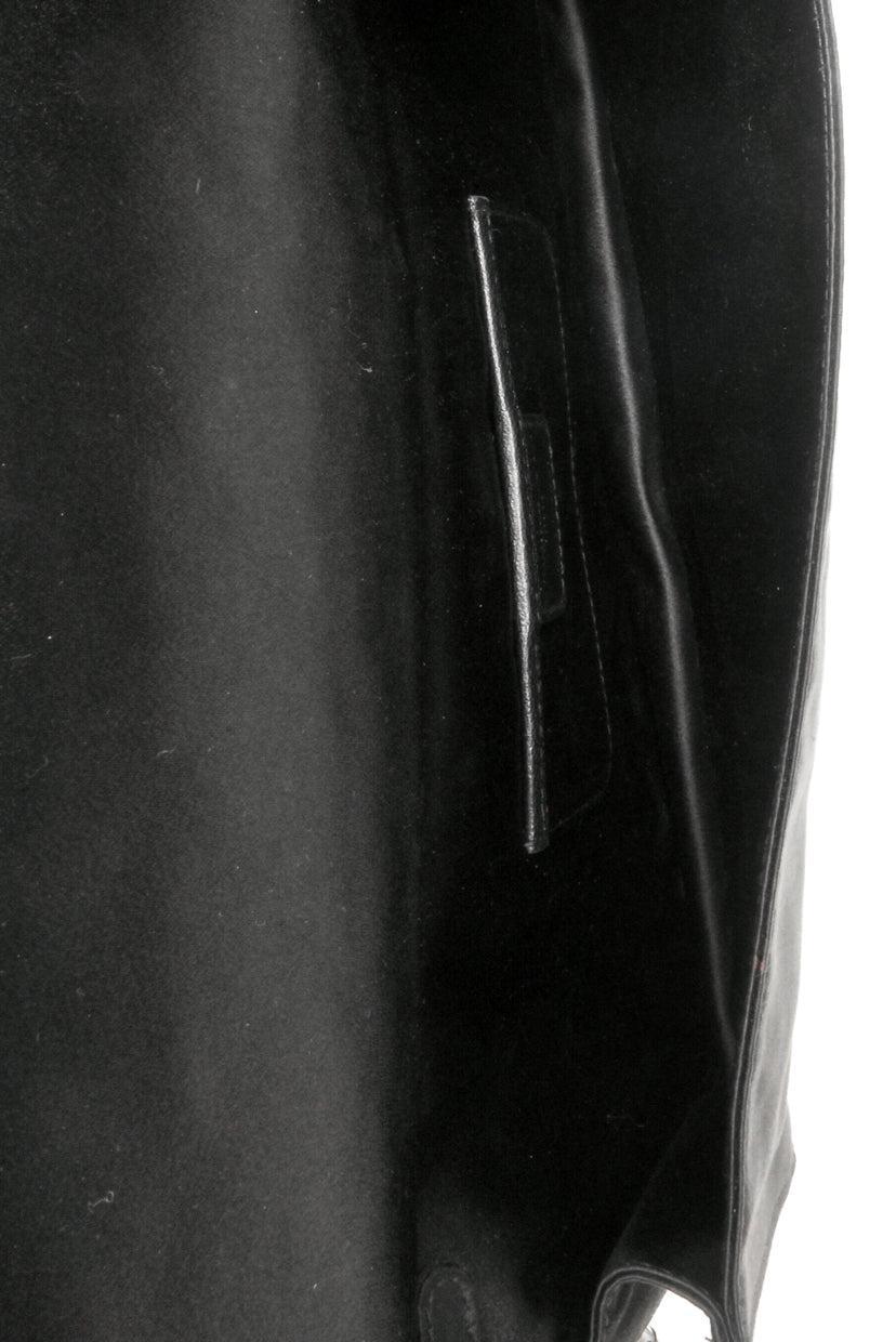 Cannage Quilted Satin Chain Pochette Clutch w/charms & detachable chain. 175-BM-0048. 5"H x 10.5"W x 1.5"D with 24" strap drop.