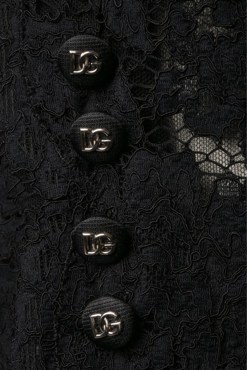 Dolce & Gabbana Size 42 Branded Stretch Lace Turlington Blazer