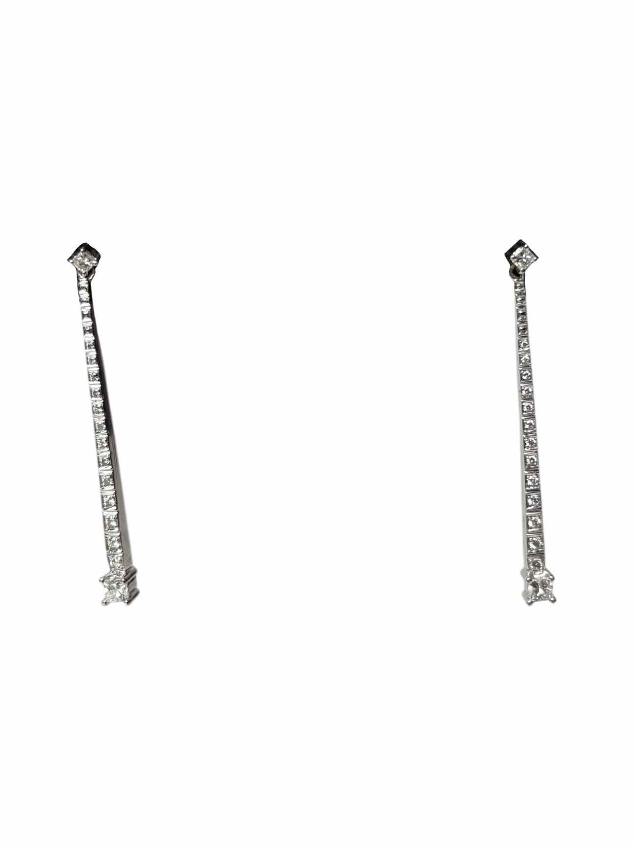 18K White Gold & Diamond Bar Drop Earrings
