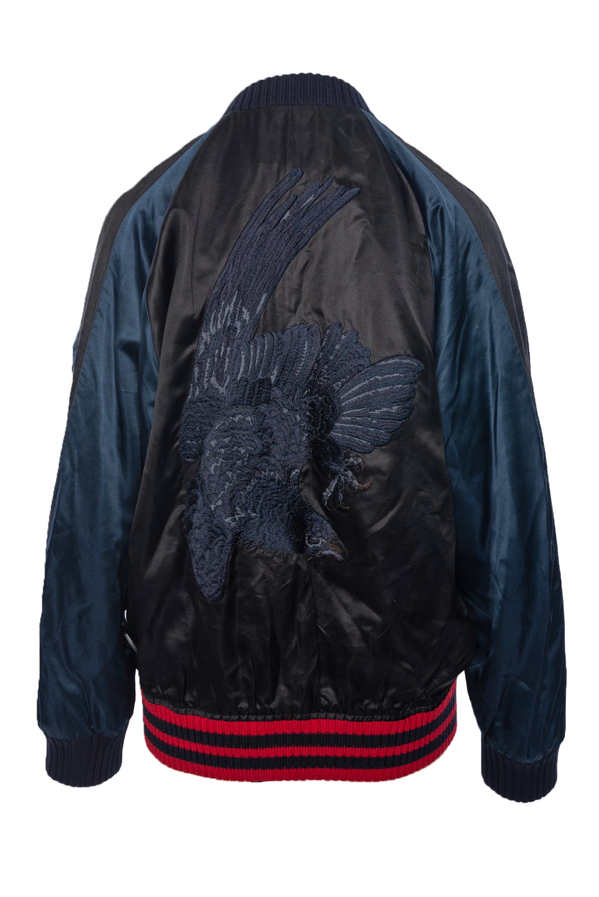Gucci Size 52 Men's 2015 Web Accent Embroidered Satin Bomber Jacket