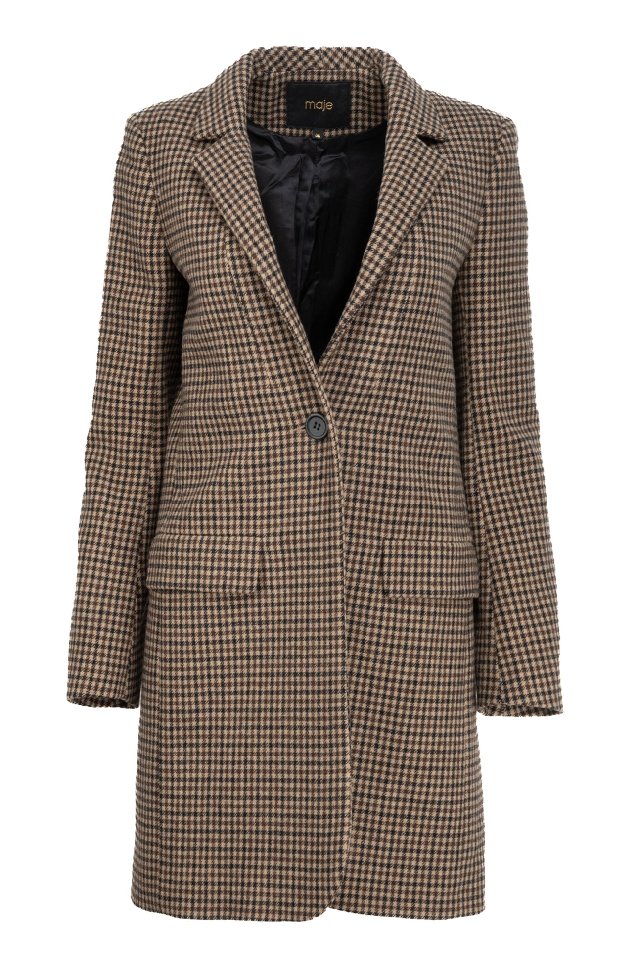 maje Size 38 Houndstooth Single Breasted Coat