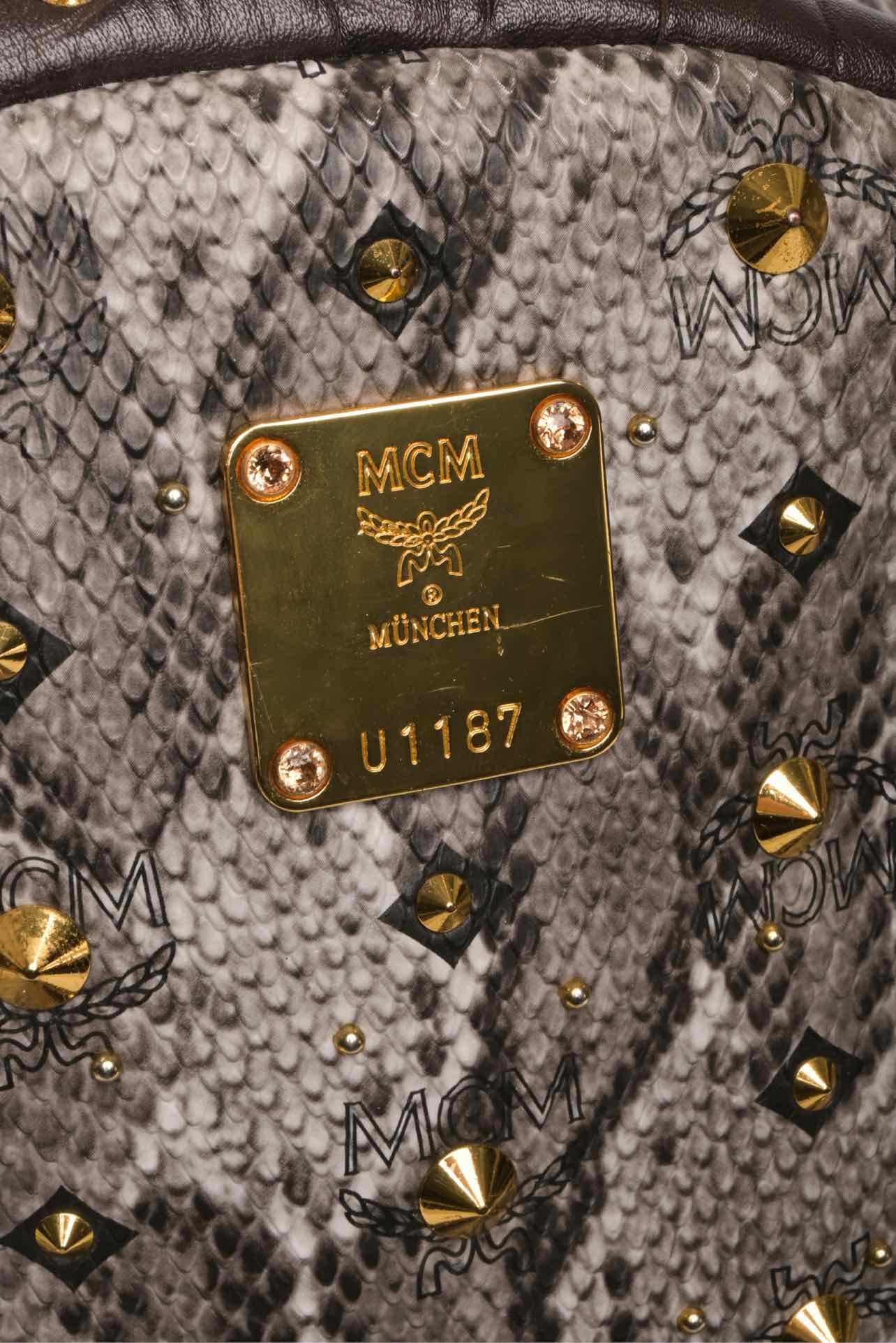 MCM Snakeskin Printed Studded Stark BackPack