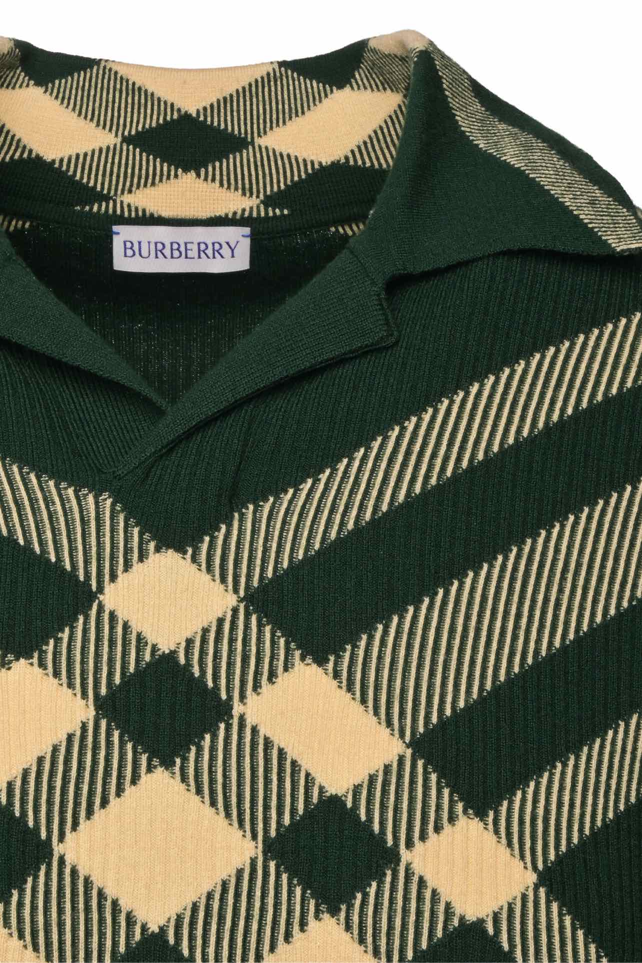 Burberry Size M Men's Check Print Merino Knitted Polo Shirt