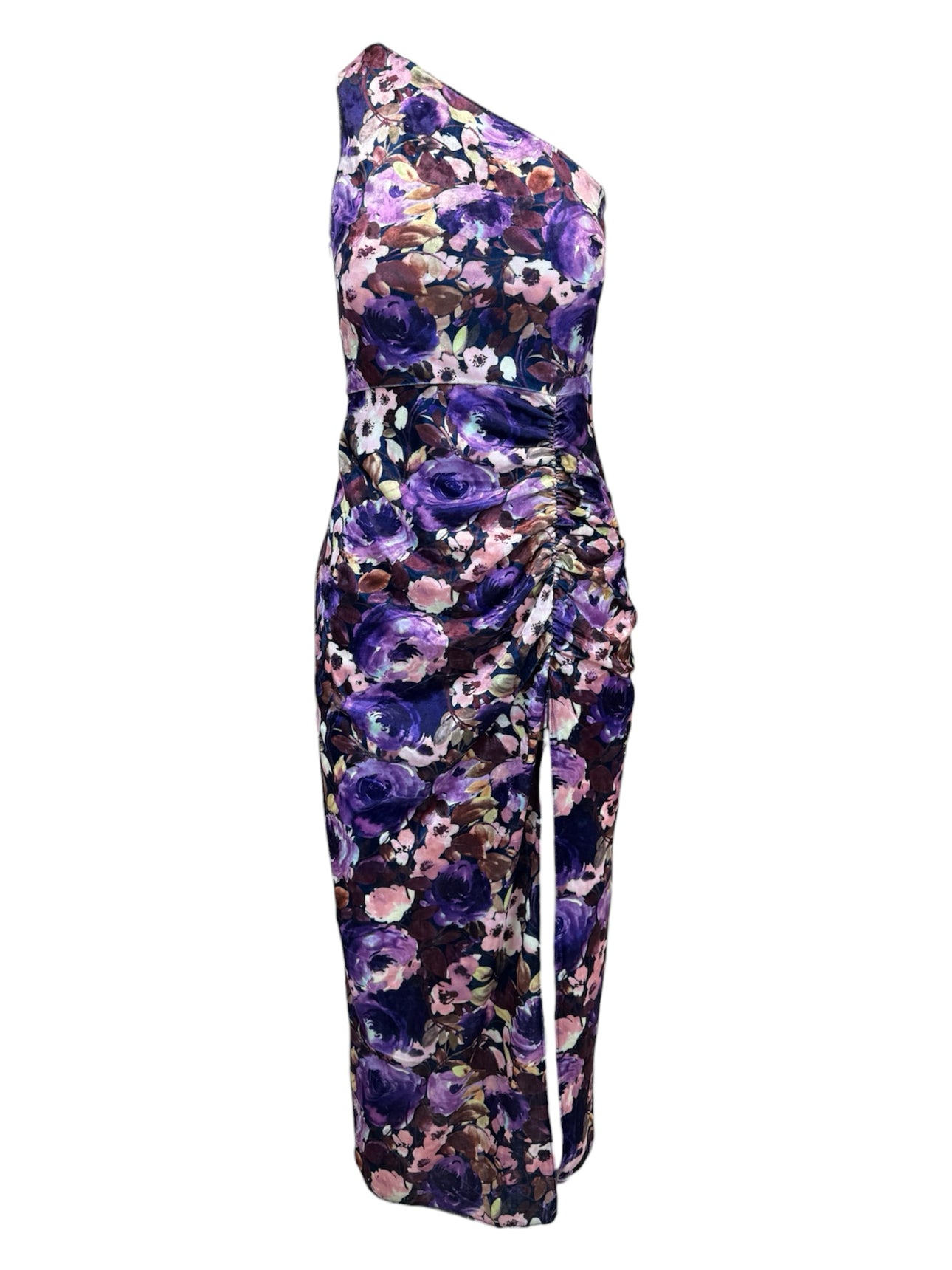 One Shoulder Velvet Floral Midi Dress. Approx Retail $390 CAD