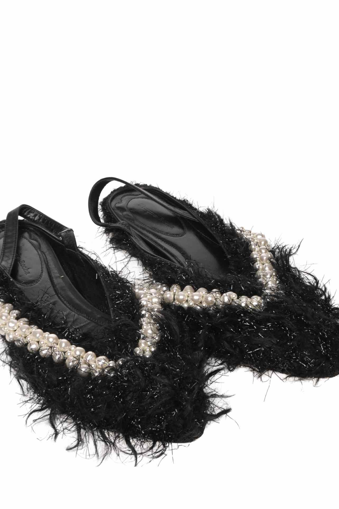 Simone Rocha Size 38 Embellished Fuzzy Pointed Toe Slingback Flats