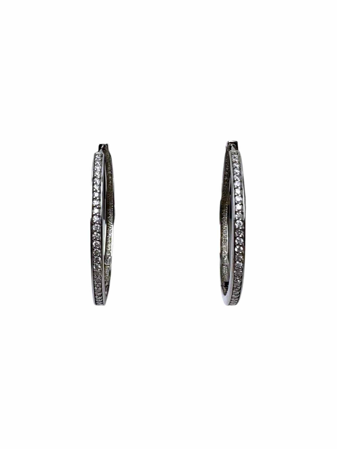 10KT White Gold Round Hoop 60 Diamond Stone Count Earrings