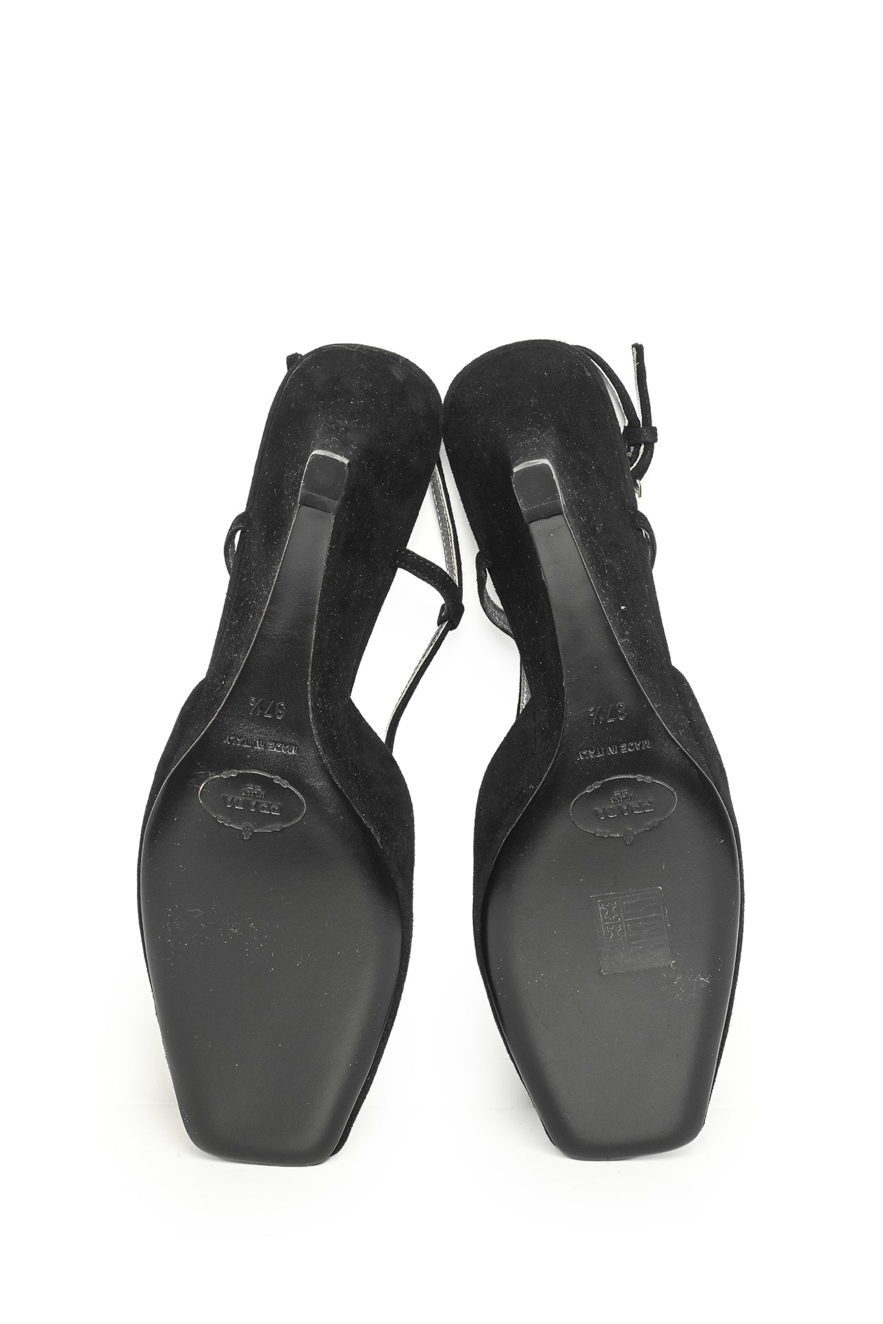Prada Size 37.5 Peep Toe Suede Slingback Wedges