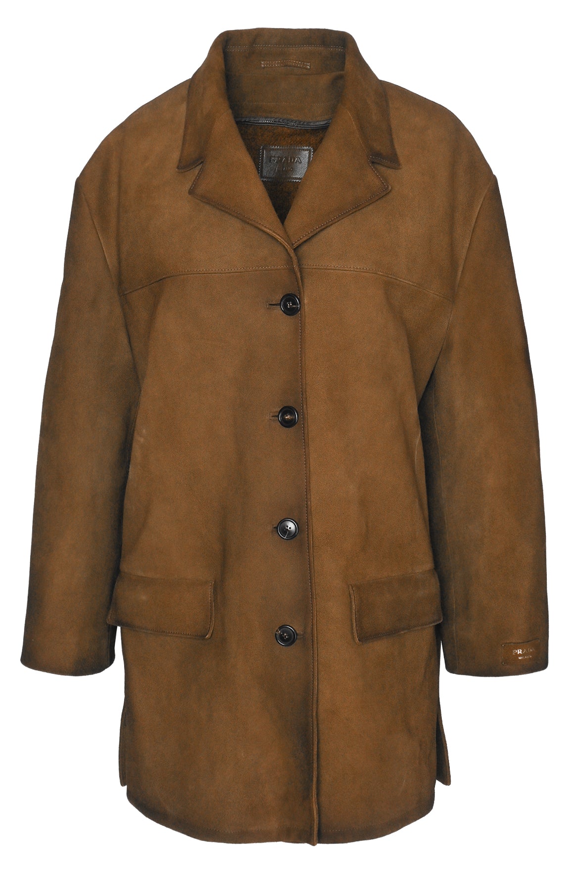 Prada Size 38 2023 Single Breasted Distressed Suede Coat