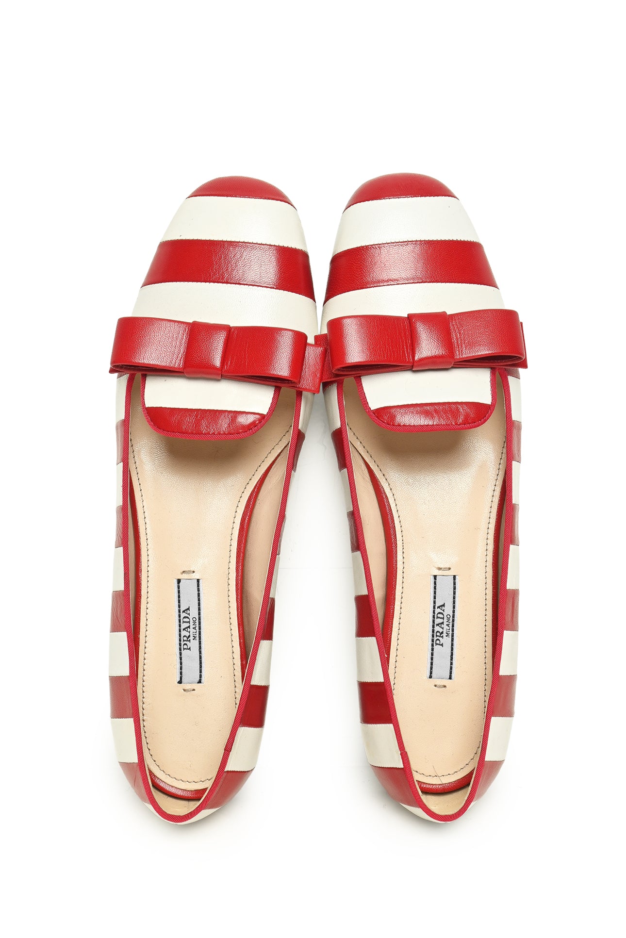 Prada Size 40.5 Striped Bow Flats