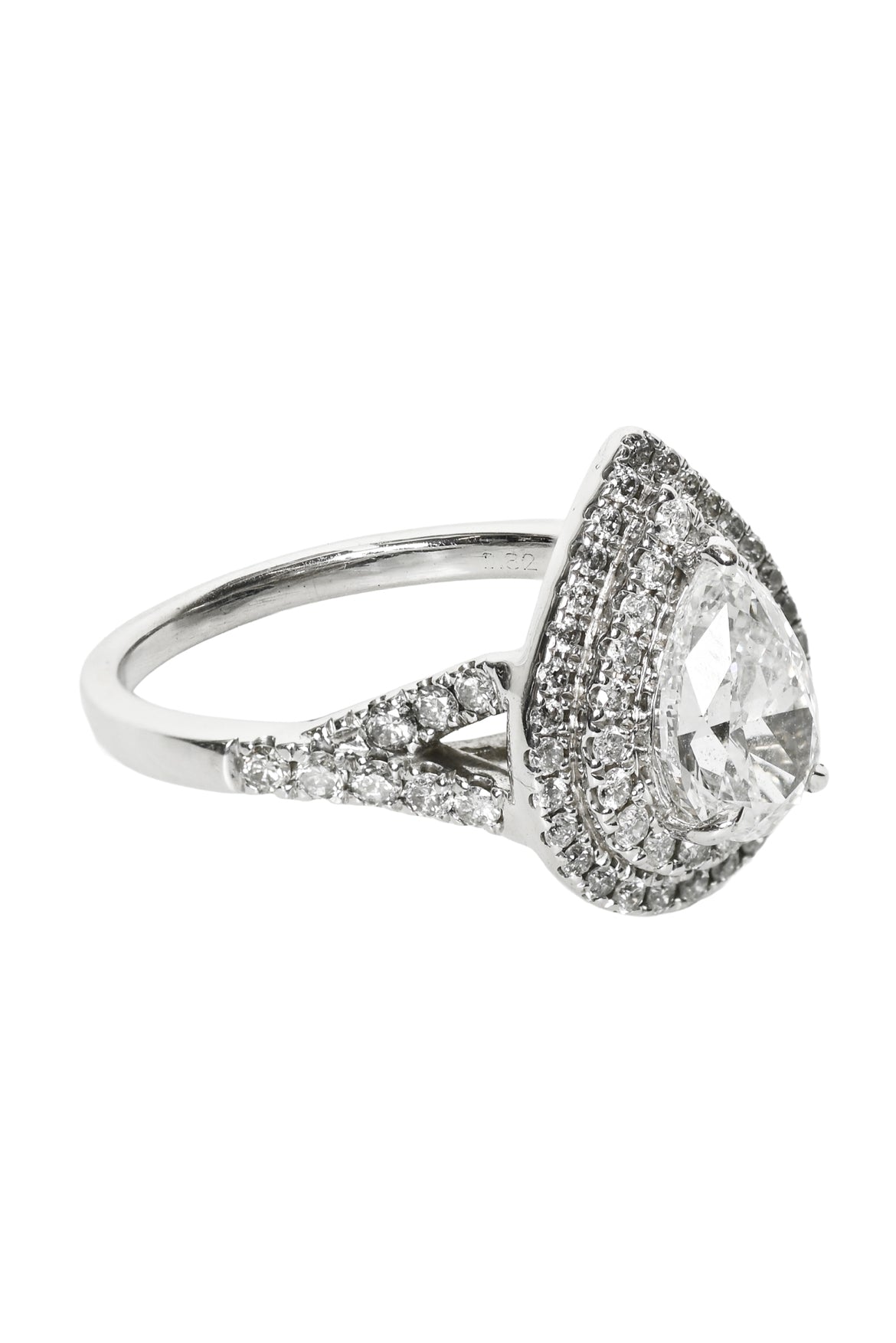 14k White Gold Pear Shaped Diamond Size 6 Ring