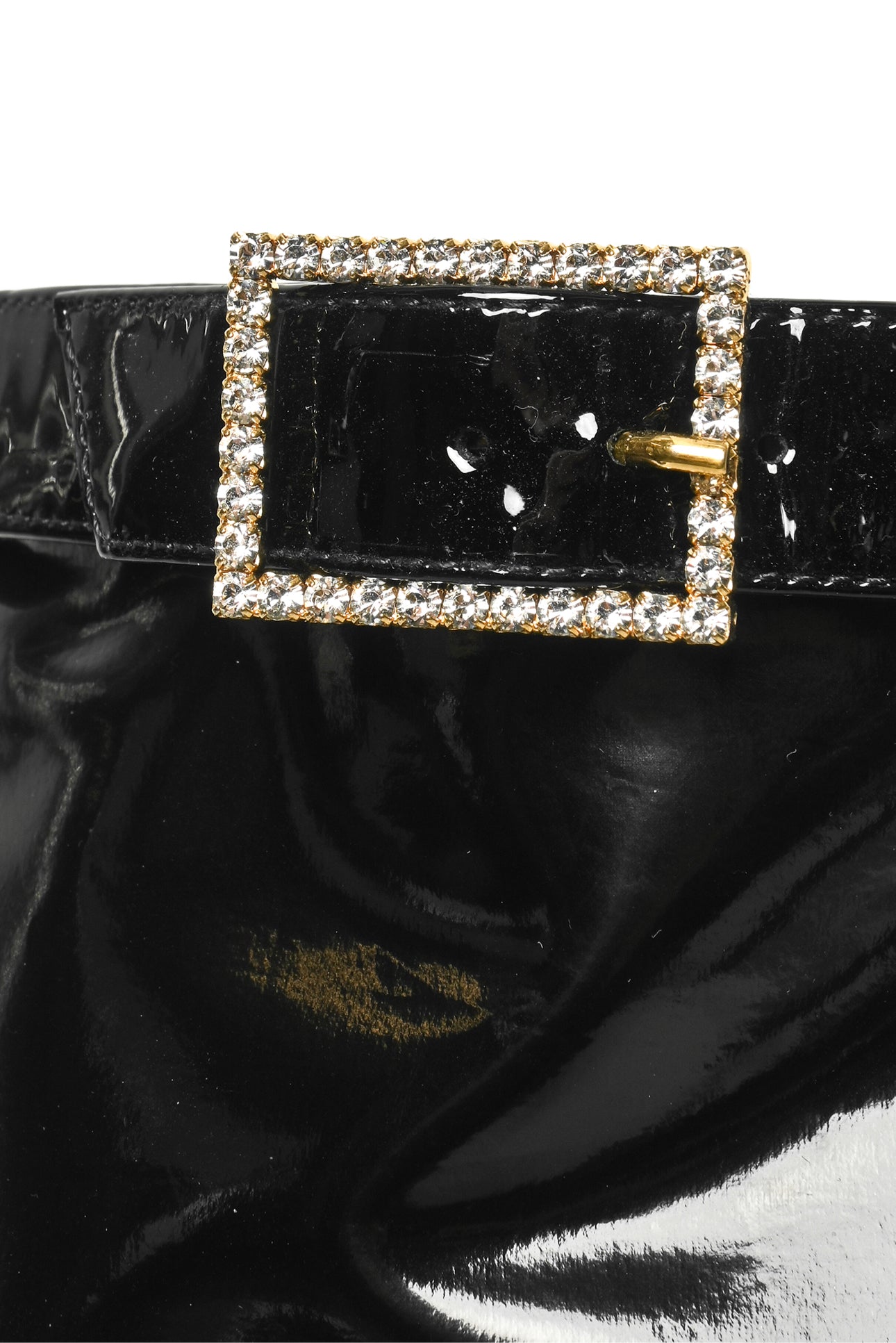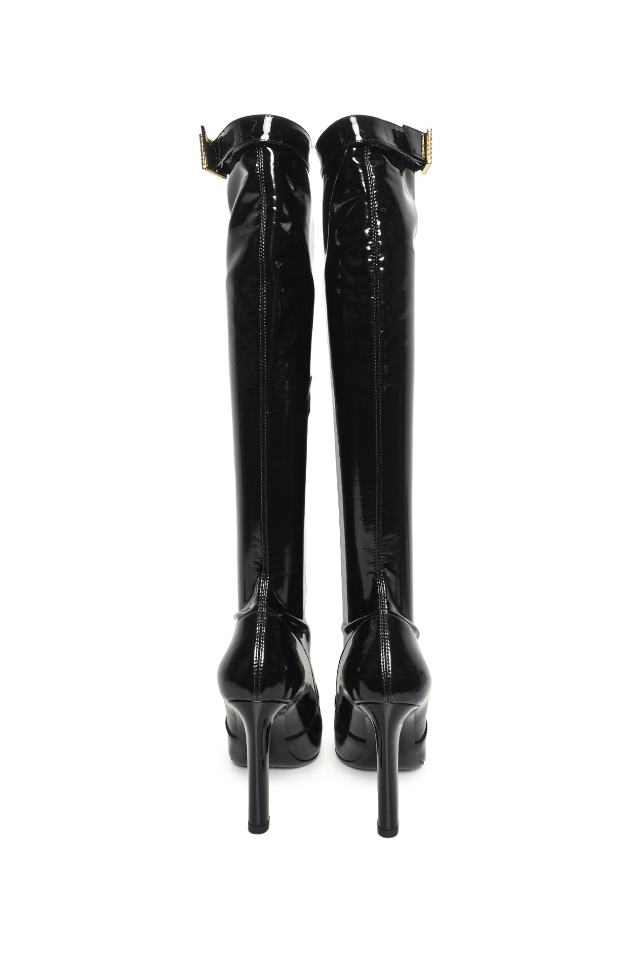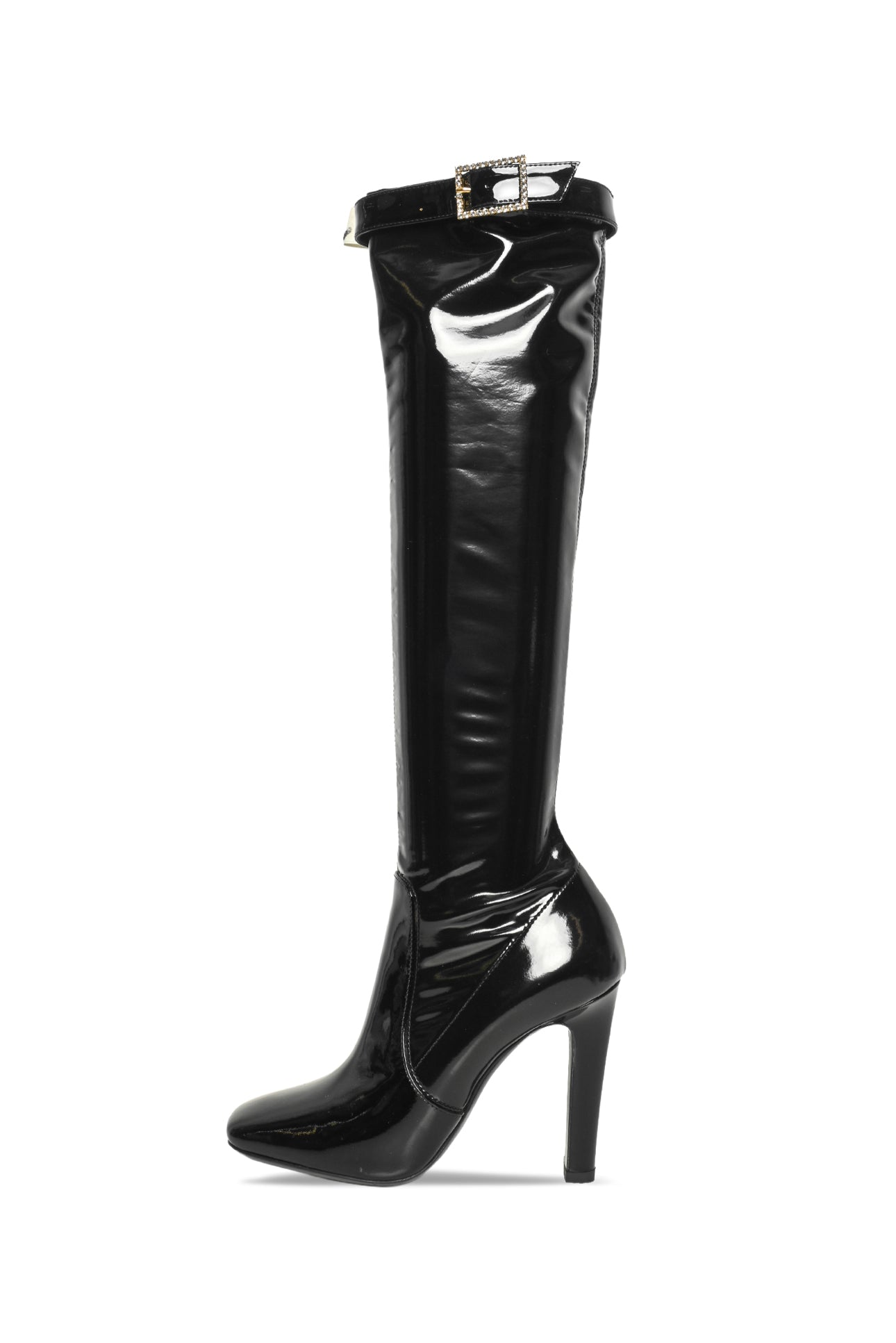 Saint Laurent Size 37 Patent Stretch Crystal Buckle Lala 105 Tall Boots
