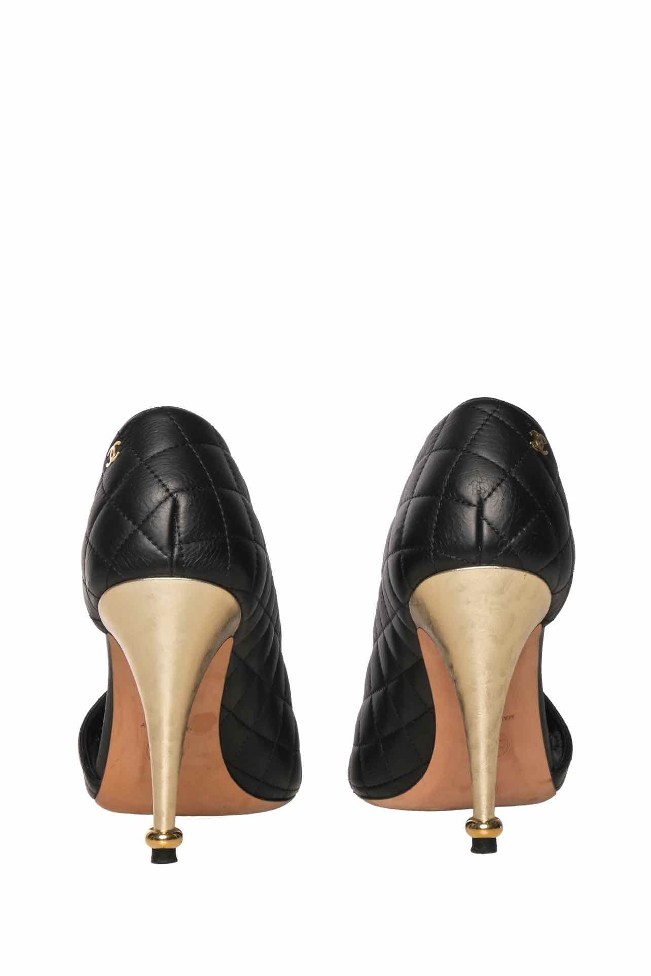 Chanel Size 39.5 D'Orsay Quilted Open Toe Pumps