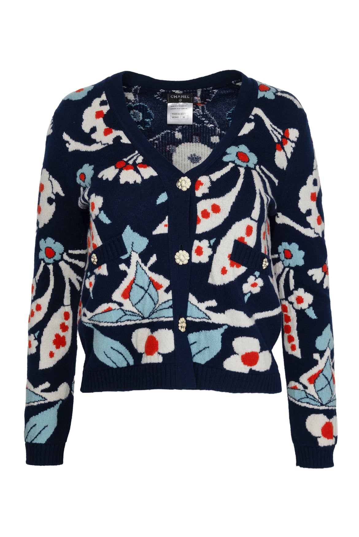 Chanel Size 38 2015 Paris Dubai Cruise Collection Floral Cashmere Cardigan
