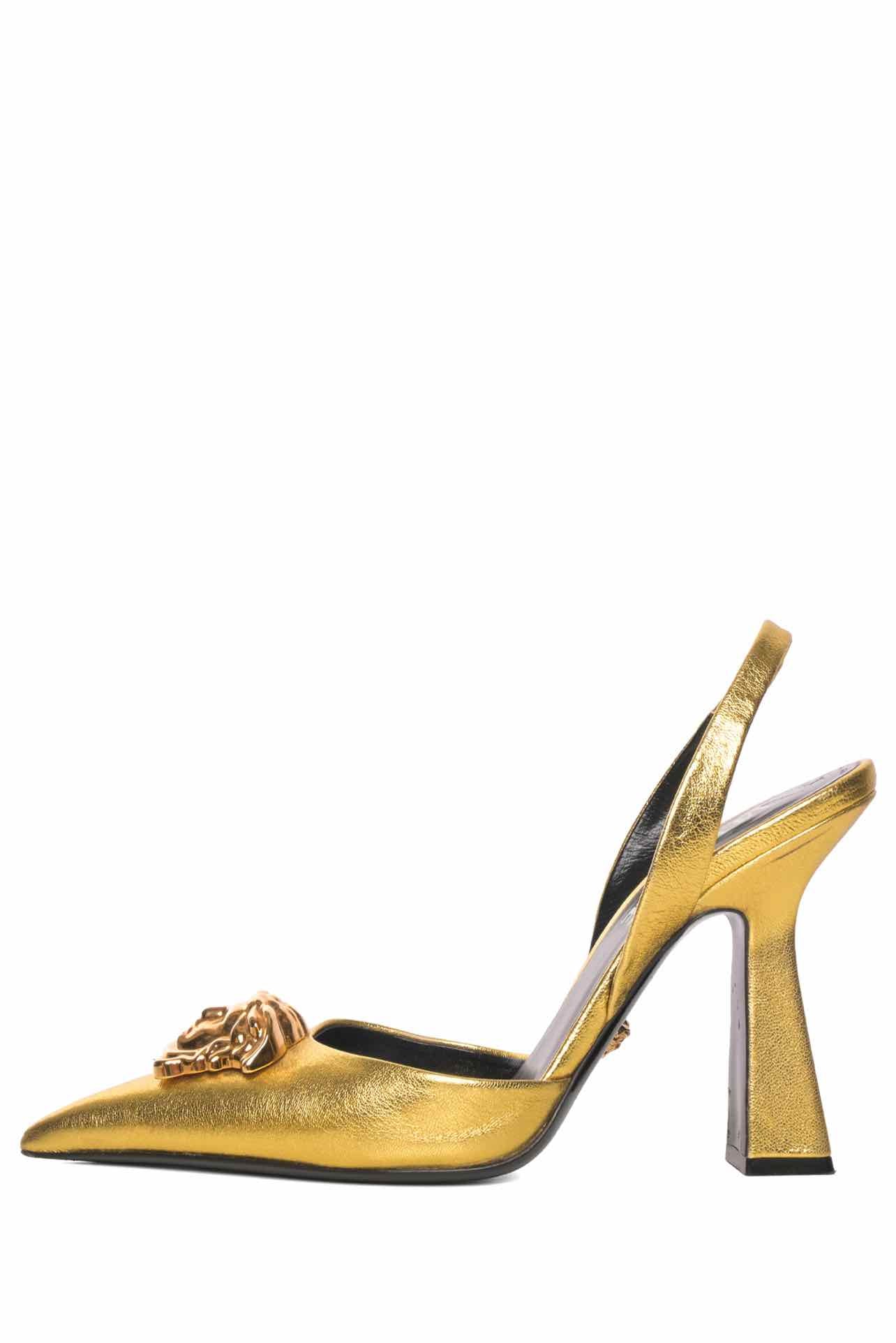Versace Size 35.5 La Medusa Metallic Leather Slingback Pumps