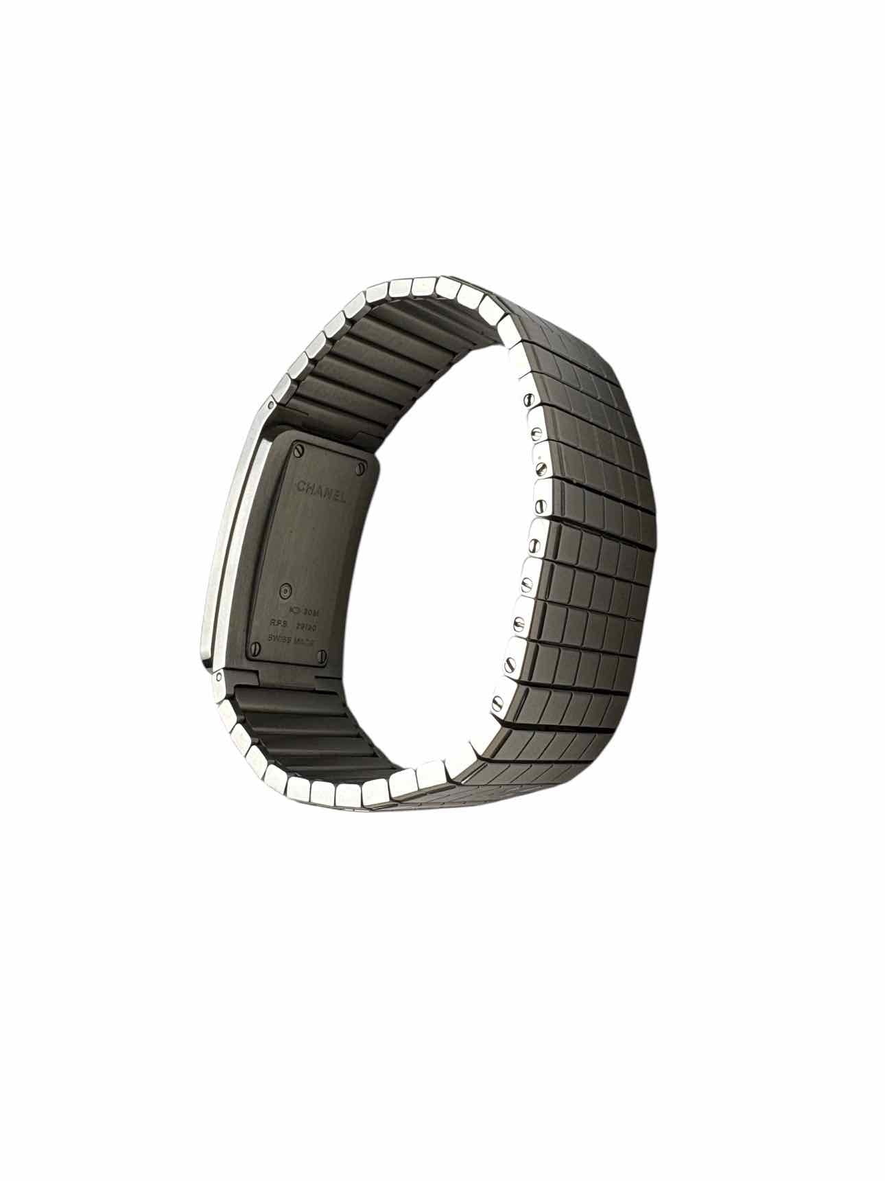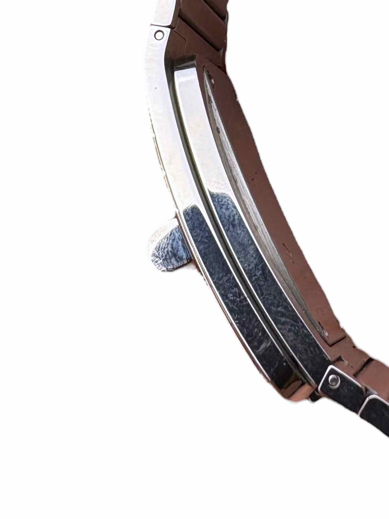 Code Coco 38mm Stainless Steel Diamond Encrusted Bezel Rectangular Face Watch. Retail $12,900CAD. Comes w/paperwork/box. Minor scratches on band. 8" length 0.75" Width. Bezel set with 52 brilliant cut diamonds, Dial set with 0.05 ct princess cut diamond.