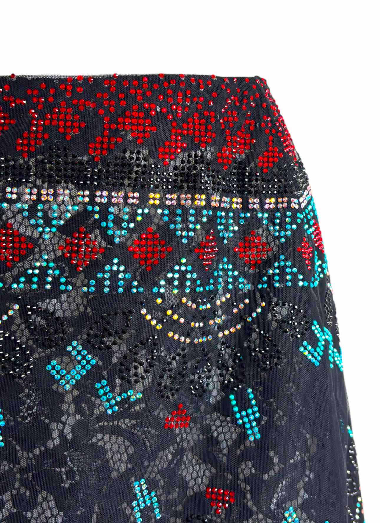 Crystal Embellished Mini Skirt w/Lace Hem. As is, missing stones.