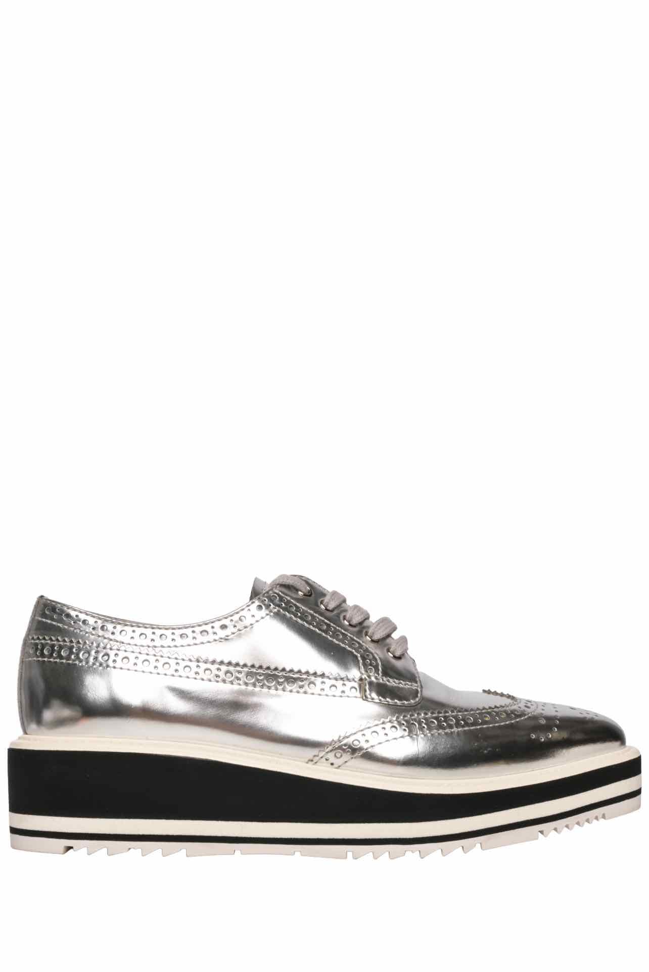 Prada Metallic Leather Brogue Oxford Flats